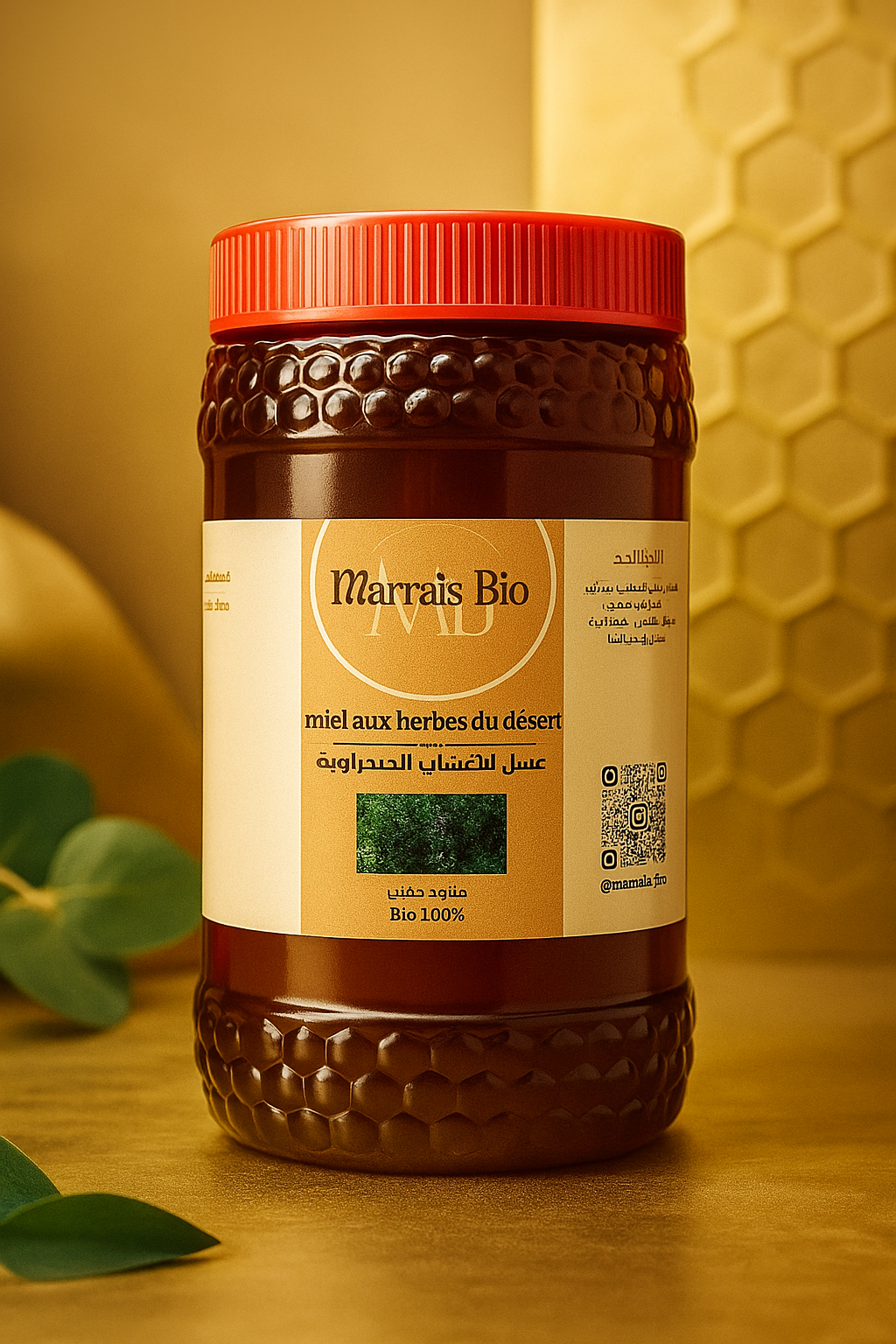Un miel rare et authentique, récolté à partir d’un mélange d’herbes médicinales sahraouies qui poussent dans des zones pures et préservées. Il se distingue par sa couleur sombre, son arôme intense et sa saveur riche typique des plantes du désert.